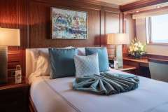 Uniquely positioned on the Bridge deck to port amidship, this VIP stateroom features a Queen bed with ensuite head including a stall shower. Views from this level are breathtaking.