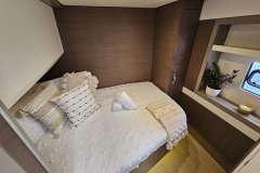 5 queen cabins with ensuite available for guest use. Two single v berth cabins available for young adults/children - please inquire for more information.5% of the gross charter value for the use of x1 forepeak cabins.