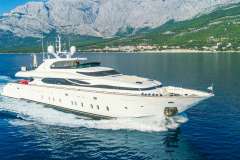 Advertised by Amwax Prime, the breathtaking charter yacht CYNTHIA is a 115 ft yacht featuring a jetski. The most appealing features of CYNTHIA are her generous space and interconnection with the sea. She was constructed by recognized shipbuilder Maiora in 2010. A well-done refit was fulfilled in 2024. The well-planned yacht layout features 4 generous cabins and easily accommodates a maximum of 8 guests.