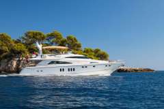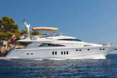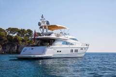 This gorgeous Fairline Squadron 78 provides generous living areas both inside and out. Her chic modern décor with luxury furnishings, beautiful woods and quality leathers provide the perfect setting for stylish cruising of the Mediterranean.