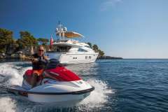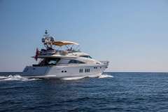 Offered by Amwax Prime, the breathtaking charter yacht D5 is a 79 ft yacht featuring a jetski. The most valuable elements of D5 are her impeccable styling and culinary experience. She was completed by the famous yacht builder Fairline Squadron in 2009. The ingenious yacht layout features 4 generous cabins and easily accommodates a group of 8 guests.