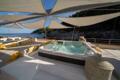 Offered by Amwax Prime, the astonishing charter yacht Dalmatino is a 142 ft yacht featuring a jetski and a hot tub. The most valuable elements of Dalmatino are her well-chosen interiors and fantastic layout. She was completed by a custom yachtbuilder in 2019. The well-planned yacht layout features 6 cozy cabins and comfortably accommodates a maximum of 12 guests.