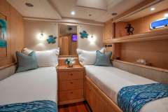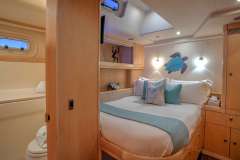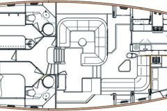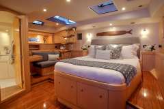 Dama de Noche can accommodate six guests in three cabins each with an ensuite head with shower. The main cabin has a centerline double berth with a private access to the aft deck. The Starboard cabin has a double berth and the Port cabin two side by side twin beds.