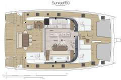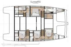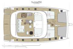 A 2019 launch and 2023 refit by AE interior, Sunreef 60 DAWN features both, a smart and charter-friendly layout as well as impressive and relaxing social areas at the bow, stern cockpit and flybridge.