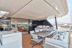 Large Flybridge is equipped with BBQ and large stylish Flexform lounging sofas, cushions and sunbeds.