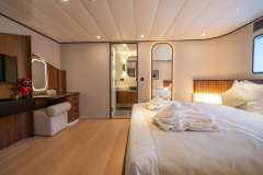 Offered by Amwax Prime, the astonishing charter yacht DE LOVE is a 154 ft yacht featuring a jetski and a hot tub. The highlights of DE LOVE are her impeccable styling and alfresco dining areas. She was completed by a custom yachtbuilder in 2024. The ingenious yacht layout features 7 large cabins and comfortably accommodates up to 14 guests.