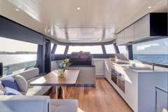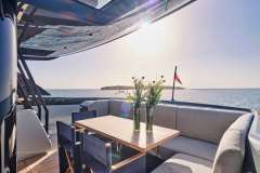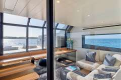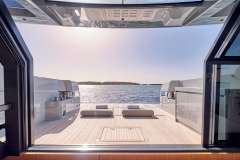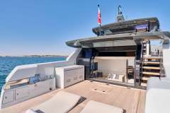 Conceived for those who pursue a profound closeness with the sea, this surprising power Bluegame BGX63 will make you experience the infinite blue even when inside your yacht. Two salons for maximum privacy, one on platform level and second on the main deck. Four exterior areas including a huge beach platform, a more private bow area along with a main deck dining area and sundeck matress area.