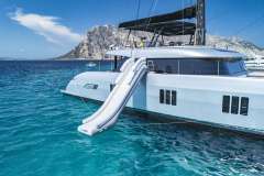 Introduced by Amwax Prime, the impressive charter yacht E Supercat is a 71 ft yacht. The most attractive features of E Supercat are her generous space and experienced crew. She was delivered by the renowned boatbuilder Sunreef Yachts in 2019. A well-done refit was delivered in 2023. The well-planned yacht layout features 4 large cabins and comfortably accommodates a group of 8 guests.