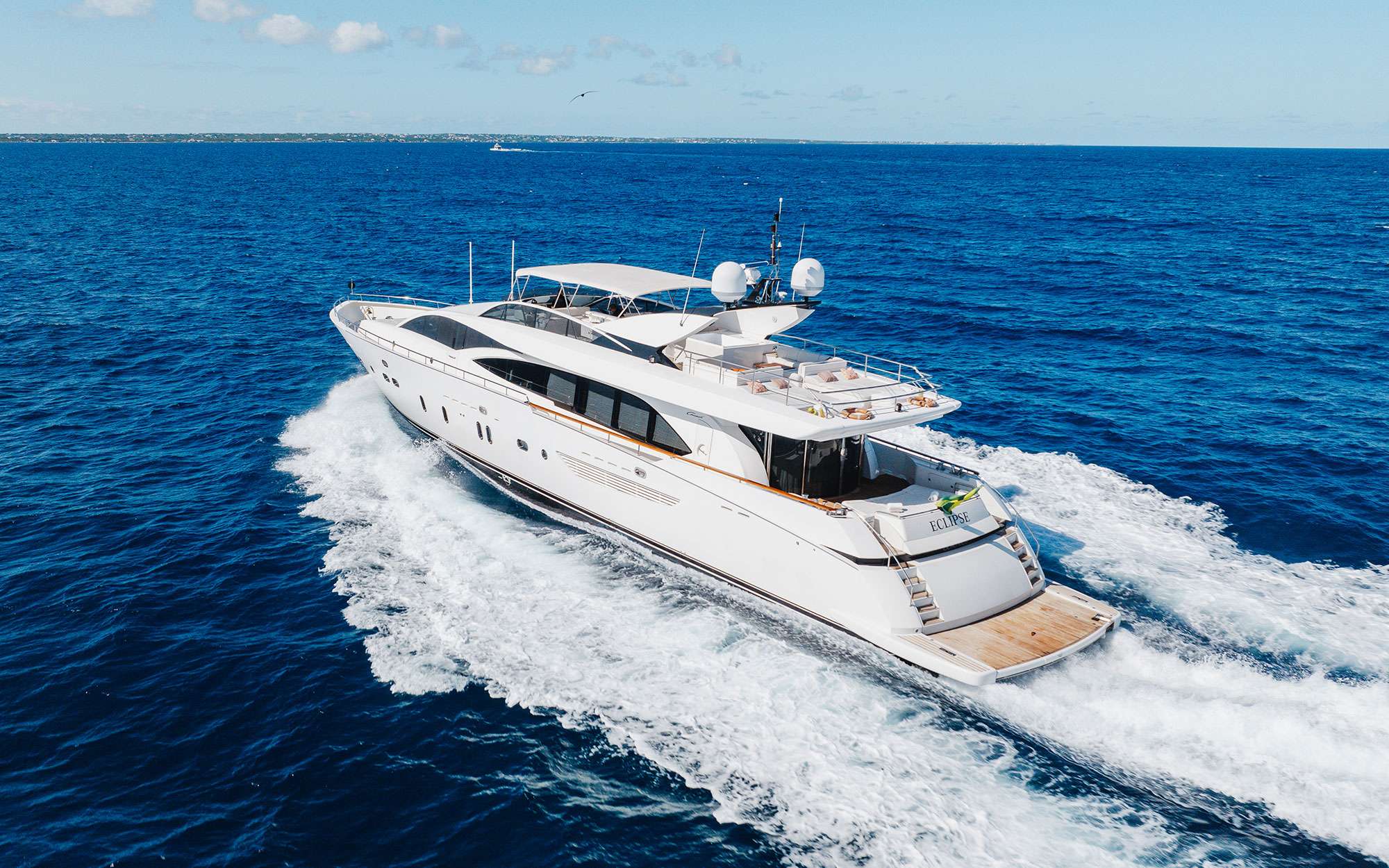 Advertised by Amwax Prime, the impressive charter yacht ECLIPSE is a 114 ft yacht featuring a jetski and a hot tub. The most attractive features of ECLIPSE are her absolute comfort and alfresco dining areas. She was delivered by the ship builder Couach in 2005. A comprehensive refit was completed in 2020. The expansive yacht layout features 5 generous cabins and easily accommodates a group of 10 guests.