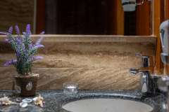 Cabin (10.00 m2) with a double bed (140*200 cm). Private bathroom with a shower box and a home type toilet.