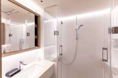 Each cabin is equipped with hairdryer, toiletries, and USB/USB-C outlets.