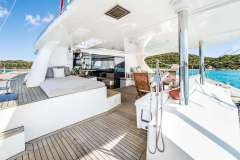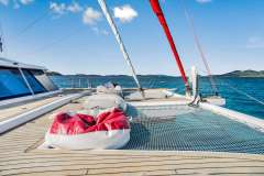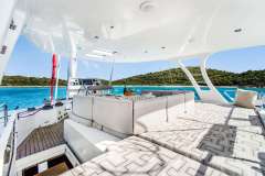 This stunning Sunreef is a superb example of a luxury charter sailing catamaran. She has 3 queen cabins each with private ensuite baths including electric heads, vanity and separate showers. She boasts multiple areas for all 6 guests to sit and relax or sip a cocktail and enjoy the cool trade winds of the beautiful Caribbean! Furthermore, the salon has more than enough space for all guests to be comfortable for lounging or dining. The exterior aft deck also offers alfresco dining for 6 guests, top deck seating and a lounge area in front of the helm. Your guests will have their expectations exceeded time and time again while on charter on Euphoria!
