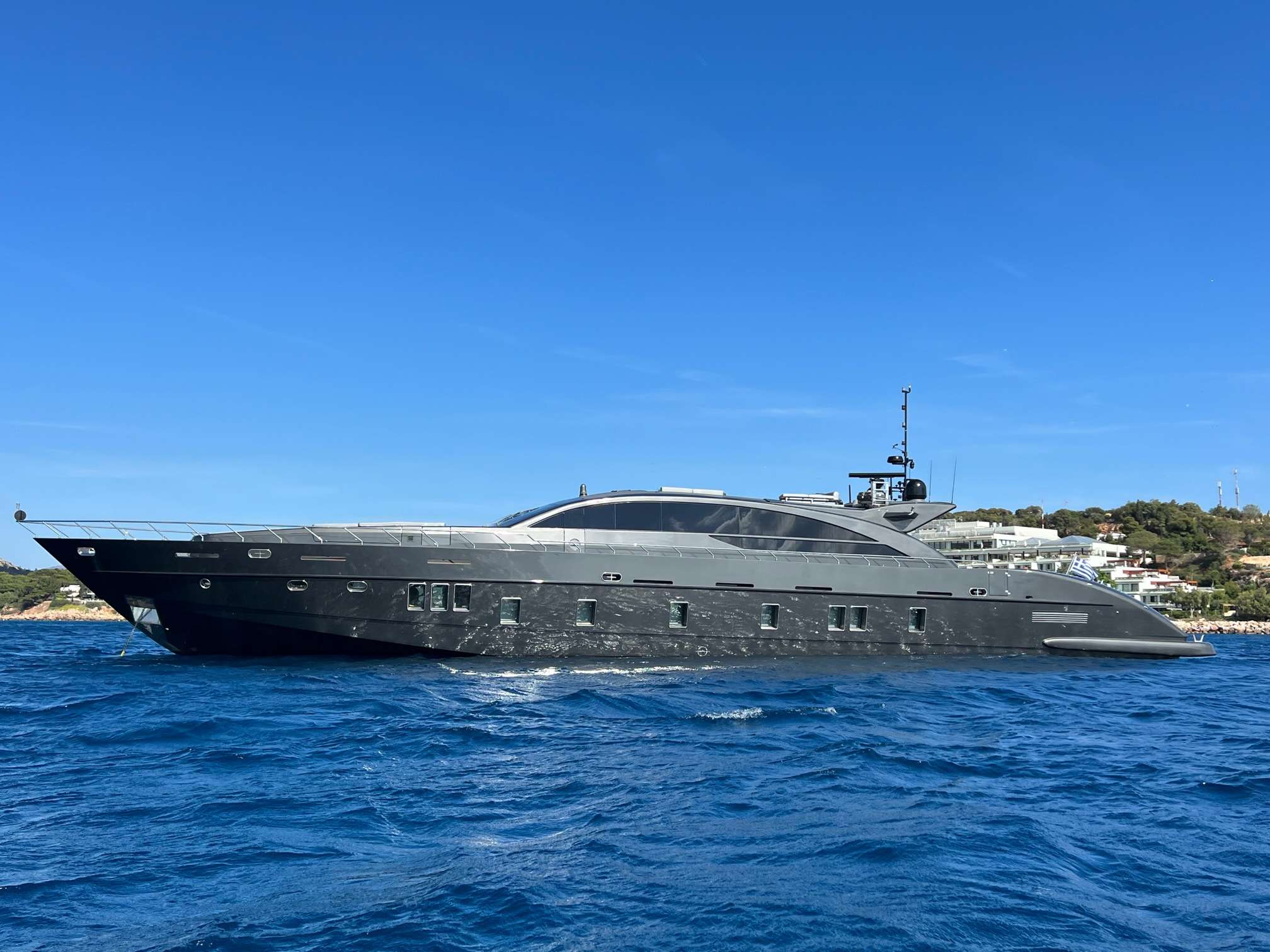 Advertised by Amwax Prime, the astonishing charter yacht EVA is a 119 ft yacht featuring a jetski. The most valuable elements of EVA are her impeccable styling and alfresco dining areas. She was constructed by the renowned boatbuilder Tecnomar in 2009. A well-done refit was finalized in 2023. The well-planned yacht layout features 5 large cabins and comfortably accommodates a group of 12 guests.