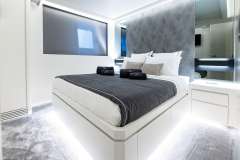The yacht is outfitted with an accommodation for a total of 12 guests.One Master cabin with two ensuite separate bathrooms, a vanity table and sitting area.