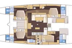 The yacht has 4 double queen size bed cabins all with private bathrooms. Crew of three in separate cabins.
