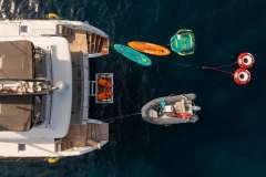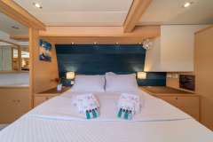 The cabins are spacious with storage areas for guests, ensuring maximum comfort and privacy. From her lovely flybridge and al fresco dining area, to her shaded spaces on the main deck and the sunbathing trampolines forward, she covers every base for relaxation and entertainment.