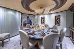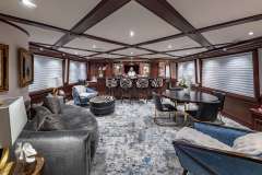 The main salon is spacious with several different seating areas with couches, occasional chairs and a full entertainment system including a 42โ Sony TV monitor. The dining area is separate where up to 10 guests can enjoy formal dining and delicious cuisine from the professional chef.