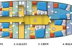 2 Master cabins: Cabin 5.40 m2 with double bed2 Double cabins: Cabin 4.70 m2 with double bed