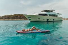 Introduced by Amwax Prime, the astonishing charter yacht FRIEND’S BOAT is a 86 ft yacht. The main attractions of FRIEND’S BOAT are her elegant profile and interconnection with the sea. She was constructed by the well-known ship builder Ferretti in 2008. The ingenious yacht layout features 4 large cabins and easily accommodates up to 8 guests.