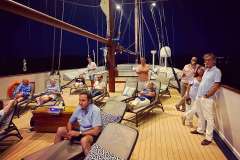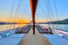 Imagine 157 feet of comfort, old style beauty, and safety classified by the latest International “Safety of Life at Sea” (SOLAS) standards. Imagine your floating home on board the sleek, classic design Mega Yacht as she spreads her white sails through the seas under the name GALILEO, waving her Greek flag through the wind. Discover the world by sea at 11 knots per hour, in her un-rushed pace, one island or seashore at a time. Galileo loves to seduce her select 49 guests with her classic lines and wood paneled lounges redefining what yachting was meant to be. A spacious lounge with ample space, dining areas decorated with warm colors, rich library and two decks for sunbathing, shaded areas and outdoor bar and loungers are just some of the elements that define her essence. 360° views of unobstructed ocean are your eyes’ canvas painted with ocean blue and deep green mountains. Embrace freedom as the Galileo sets her white sails seduced by the clear winds of the sea. Mingle with likeminded travelers in our public areas, enjoy a moment to yourself in our ample deck space, or retreat to one of our 24 ocean view cabin-sanctuaries all offering portholes connecting you with mother nature’s wonders. Galileo’s experienced crew of 18 is trained with hospitality at heart to pamper her guests and guarantee the ultimate home away from home experience.