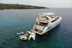 Advertised by Amwax Prime, the majestic charter yacht GIA SENA is a 85 ft yacht featuring a jetski and a hot tub. The key elements of GIA SENA are her absolute comfort and inviting socializing areas. She was delivered by the famous yacht builder Princess, UK in 2009. An elegant refit was completed in 2019. The well-planned yacht layout features 4 generous cabins and comfortably accommodates up to 8 guests.