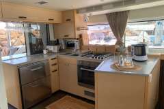 Step inside and be greeted by an elegantly styled interior filled with natural light. The large, airy saloon is the perfect blend of chic and cozy. But the magic really happens when you head out to the aft deck—a prime spot for dining, lounging, or simply soaking in those jaw-dropping ocean views.