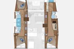 Good Mood is an owners version with 1 large master suite taking up the entire hull and 1 additional guest cabin on the other side in addition to the crew cabin. A 5th guest may be accommodated if it is a child that can share the master cabin with the parents. Please inquire to confirm.Captain Only