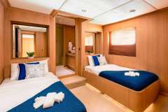 Master cabin (bed 200x180), 2 double cabins (beds 200x180) and 2 twin cabins (beds 200x90) all with ensuite facilities.Both Master cabin and double cabins have king size beds.