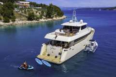 Presented by Amwax Prime, the impressive charter yacht GRACE is a 91 ft yacht featuring a jetski. The promiment features of GRACE are her well-chosen interiors and inviting socializing areas. She was constructed by the renowned boatbuilder Aegean Build in 2013. A succesful refit was completed in 2023. The expansive yacht layout features 5 cozy cabins and easily accommodates up to 10 guests.