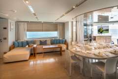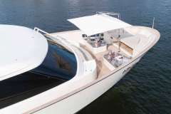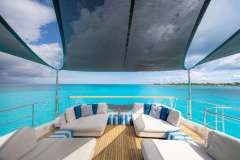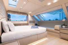 5 staterooms are offered to guests featuring a versatile arrangement to fit any set of guests needs. The on-deck MASTER provides a large full beam suite with King bed and 180 degree views. The en suite Master bath provides his and her sinks, a large, rainfall shower with bench seat and skylight.
