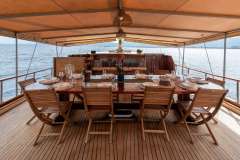 This amazing turkish gulet can accomodate up to 12 guests in 6 double beds cabins with private toilet.Captain Only
