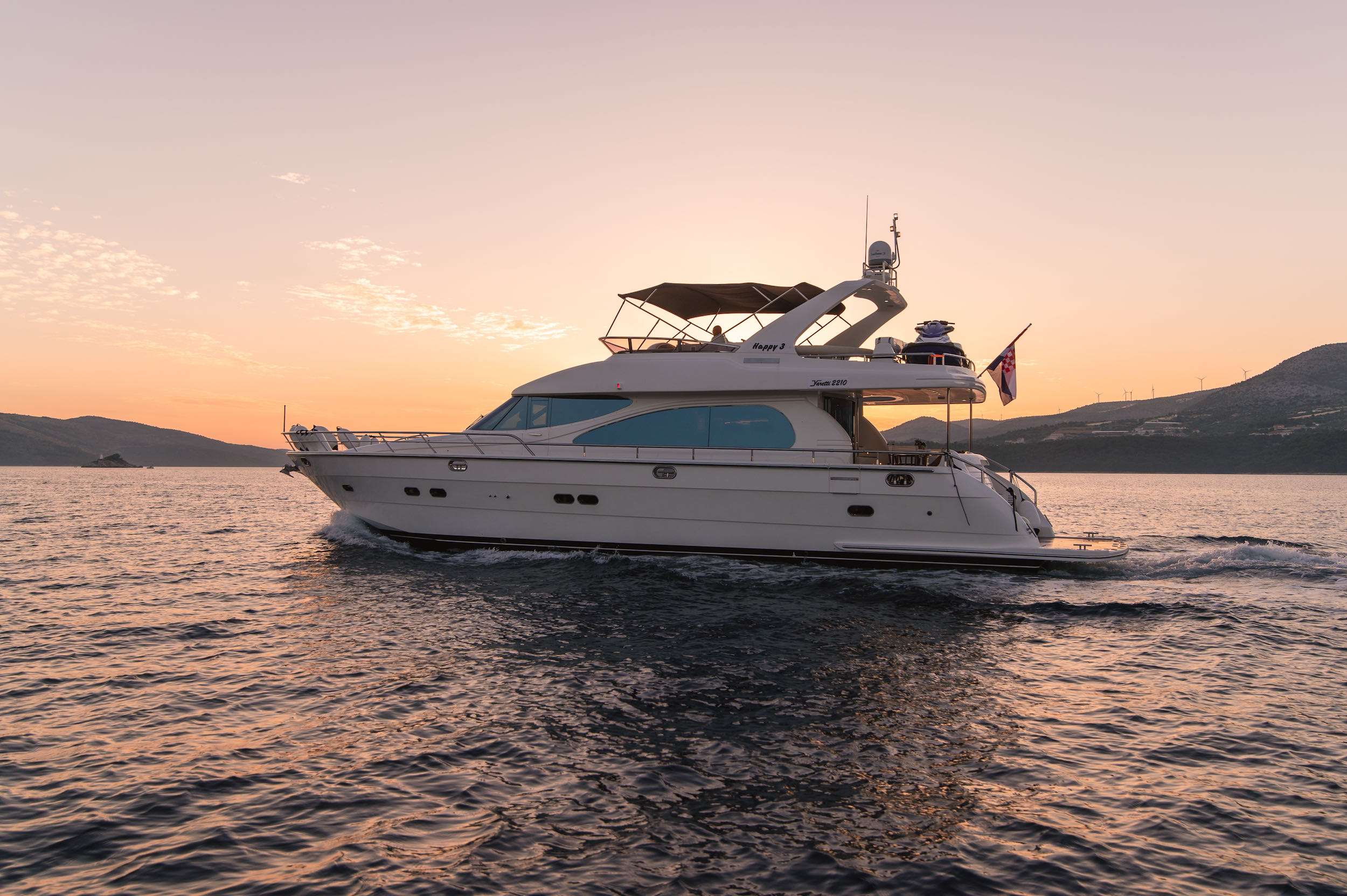 Offered by Amwax Prime, the impressive charter yacht Happy 3 is a 72 ft yacht featuring a jetski. The main attractions of Happy 3 are her most appealing features and inviting socializing areas. She was delivered by recognized shipbuilder Yachting Developments in 2004. An elegant refit was fulfilled in 2022. The ingenious yacht layout features 3 large cabins and comfortably accommodates a maximum of 6 guests.