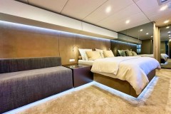 HONEYBIRD is the epitome of luxury on the water, offering an unparalleled retreat for up to six guests seeking both relaxation and sophistication. The exquisite master suite comes with a generous walk-in closet, while two beautifully designed guest cabins provide spacious accommodations, each featuring private en-suite bathrooms.Cabin arrangement of HONEYBIRD?
