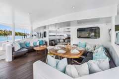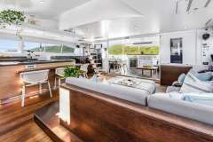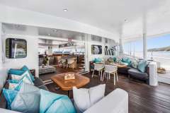 HQ2 is expertly built by Two Oceans Marine in Cape Town South Africa. She has been custom-designed by award winning design firm Du Toit Yacht Design. She is built for comfort and is essentially the luxurious on-the-water home away from home. This is a yacht of elegance, with beautiful lines and intricate features. The interior has been designed for effortless ocean living as the easily accessible spaces are open and free-flowing. HQ2's interior includes a generously proportioned saloon and galley. The saloon is equipped with a state-of-the-art B&O sound system, a 50 inch TV, DVD player and Sony Playstation 4&5. Meanwhile, the galley features a Vitrifrigo freezer, three Vitrifrigo fridges, along with a suite of Miele appliances such as an outside grill, microwave, coffee machine, dishwasher, washing machine, tumble dryer and a Smeg gas oven, ensuring that the culinary experience aboard is nothing short of exceptional.