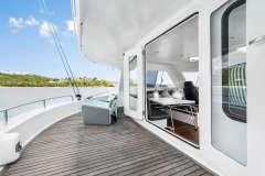 Presented by Amwax Prime, the majestic charter yacht HQ2 is a 75 ft yacht. The most valuable elements of HQ2 are her impeccable styling and alfresco dining areas. She was delivered by the famous yacht builder Two Oceans in 2013. The expansive yacht layout features 4 large cabins and comfortably accommodates a group of 10 guests.