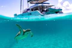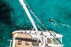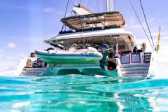 The boat is fully equipped with snorkeling equipment and an abundance of water toys. For those interested in scuba, Huntress has an assortment of top-of-the-line dive gear for that off-the-boat diving experience. Your captain is a fully certified Divemaster and would love to share his passion for diving with his guests and can lead guests on their dives. After an adventure filled day of water sports, swimming, diving, or on-shore excursions, enjoy the well-lit and large cockpit dining area as you enjoy a world class meal with your friends and family. Enjoy a handmade cocktail prepared just for you by your professional crew right there at the cockpit bar. Top-tier service is central to life onboard Huntress, and only adds to the exclusive feel of this impressive experience. You will know the meaning of peace, relaxation and class when you charter with us on Huntress. Swimming in the turquoise waters of the Caribbean you'll wonder why you never did this sooner.