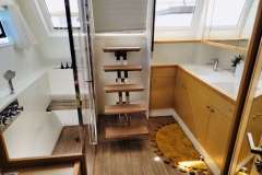 Huntress hosts up to 8 guests in four queen-sized, air-conditioned cabins. Each cabin has its own, private ensuite bathroom with a separate shower. The master suite is elegant and roomy and includes seating/lounge area and desk, queen size berth, large glass shower stall and separate vanity area and offers direct access to aft deck for slipping out to gaze at the stars and take a midnight dip off the stern. The master suite also has direct private access to the main salon.