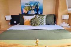 Yacht sleeps up to 8 guests in 4 queen cabins. The master cabin is a full suite with lounge and desk area, spacious bath with glass shower stall and direct access to aft deck. There are 3 queen cabins each with private ensuite electric head, shower and wash basin. Crew have twin bunks.Yacht is fully air-conditioned for guests comfort.