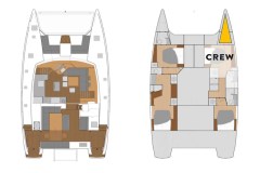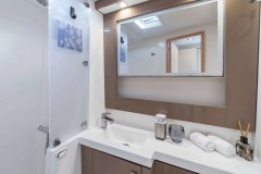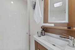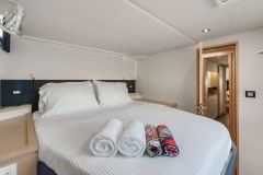 Step into spacious, light-filled cabins designed for maximum comfort. The expansive saloon is both practical and elegant, featuring a convertible sofa area and a well-appointed galley. With ample storage throughout, you’ll find every corner of this catamaran thoughtfully designed.