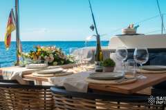 Step onboard into a world of pure opulence with the brand-new 2023 Lagoon 46 owners version, Infinity! This fully equipped, sailing catamaran is the epitome of sophistication and comfort boasting one incredibly spacious master cabin suite and two double cabins with queen sized beds and three en-suite bathrooms for guests to use.
