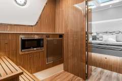 • Lower lounge cabin with convertible seating and flat-screen TV