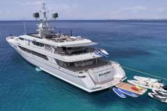 Offered by Amwax Prime, the breathtaking charter yacht INVADER is a 164 ft yacht featuring a jetski and a hot tub. The primary distinction of INVADER are her well-chosen interiors and inviting socializing areas. She was constructed by the renowned boatbuilder Codecasa in 2000. A well-done refit was finalized in 2019. The ingenious yacht layout features 5 large cabins and comfortably accommodates a group of 12 guests.