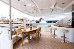 Offered by Amwax Prime, the majestic charter yacht INVICTUS is a 123 ft yacht featuring a jetski and a hot tub. The main attractions of INVICTUS are her generous space and alfresco dining areas. She was constructed by the ship builder Palmer Johnson in 2006. A succesful refit was fulfilled in 2019. The expansive yacht layout features 4 cozy cabins and easily accommodates a group of 8 guests.