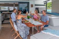 Presented by Amwax Prime, the majestic charter yacht ISLAND HOPPIN’ 55 is a 55 ft yacht. The most appealing features of ISLAND HOPPIN’ 55 are her generous space and alfresco dining areas. She was constructed by the ship builder Lagoon in 2024. The expansive yacht layout features 4 generous cabins and comfortably accommodates a group of 8 guests.