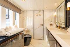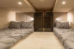 The Twin Cabin offers a welcoming and versatile space, perfect for families or friends. Its thoughtful layout and stylish decor create a comfortable retreat for relaxation. Access to the Twin Cabin is via the galley, ensuring convenience while maintaining a seamless flow throughout the yacht.