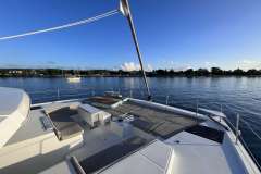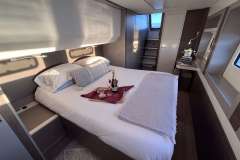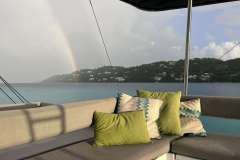 This brand new 2022 luxurious sailing catamaran, ITHAKA, is definitely a fine example of what Bali can design. As you step on board in to a beautifully appointed cockpit, complete with teak floors and dining table for eight and a comfortable lounging bench, you immediately realize what a unique charter experience you are about to have. As you make your way up to the flybridge you’ll be blown away by the amazing turquoise water with 360° views and enjoy the up-close view of the sails. It’s also a great place to read your favorite book or a favorite spot for appetizers and cocktails at sundown. The main salon is comfortable and luxurious with open spaces and natural light fed by all the windows surrounding you. All four guest cabins are spacious with large windows and offer plenty of natural light. For your comfort, every cabin offers queen sized beds and private baths with dedicated shower stalls as well as flatscreen TVs and a stereo system for both central and individual cabin control. The high level of finishing throughout every cabin reflects the luxury that you would expect from a yacht of this caliber. With all the different areas, ITHAKA is show-stopper and has enough amenities for everyone to enjoy!
