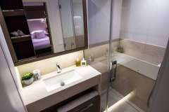 Direct access from the main saloon and out on to the cockpit and foredeck adds to the exclusivity of the master cabin space.
