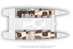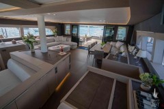 Large open spaces, with an easy flow, make the most of the catamaran’s huge volume and huge windows flood the yacht with light.