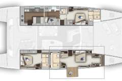 Two VIP cabins both feature queen berths all with private bathrooms. Her 36ft beam, provides such volume to her guests. In the fore deck is ideal for those how want to take in some sun. The space is epic!