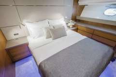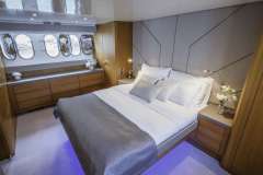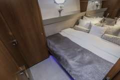 KARISMA can accommodate up to 8 guests in 4 cabins on the lower deck.The Master en-suite cabin (bed dimension 160x200) extends across the full beam with walk-in wardrobe.